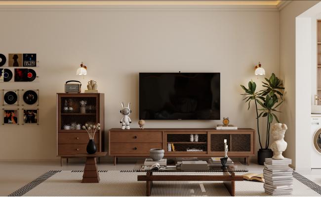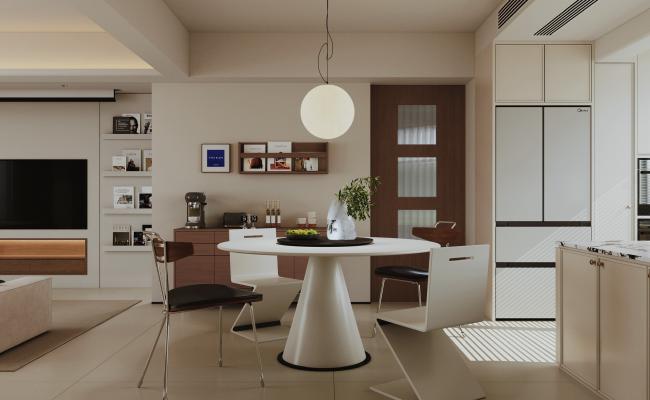 業(yè)主是一對(duì)年輕夫妻,喜歡有格調(diào)且?guī)?fù)古的元素,整體采用現(xiàn)代中古風(fēng)格加一些包豪斯的概念,形成一種獨(dú)特而富有魅力的設(shè)計(jì)風(fēng)格,在設(shè)計(jì)整體上注重簡(jiǎn)潔有型,不管在硬裝造型上還是家具裝飾上,基本以抽象的幾何體塊和有機(jī)曲線結(jié)合
