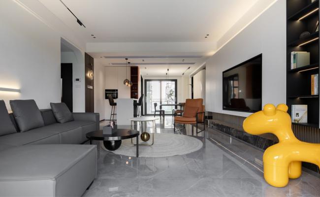 屋主夫婦2人就職于設(shè)計院,平時在家有辦公的需求。 以此為契機,設(shè)計師梳理了各區(qū)域的空間設(shè)計。 整體動線以客廳為主體向四周擴散,打通客廳與餐廳以及書房的壁壘。