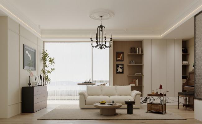 整體空間的布局考慮到了實(shí)用性與美感的完美結(jié)合。 客廳的中式弧頂設(shè)計(jì)有效地提升了空間的高度感。同時(shí),通過其半吊頂?shù)那擅钐幚?,也使得整體空間變得更加寬敞明亮,中式弧頂讓客廳的上方空間顯得更為開闊,消除了可能存在的壓抑感。 半吊頂?shù)脑O(shè)計(jì)則充分利用了空間結(jié)構(gòu),它在不占用過多空間的情況下,合理地調(diào)整了視覺效果,讓整個(gè)客廳看上去比實(shí)際面積更顯寬敞。