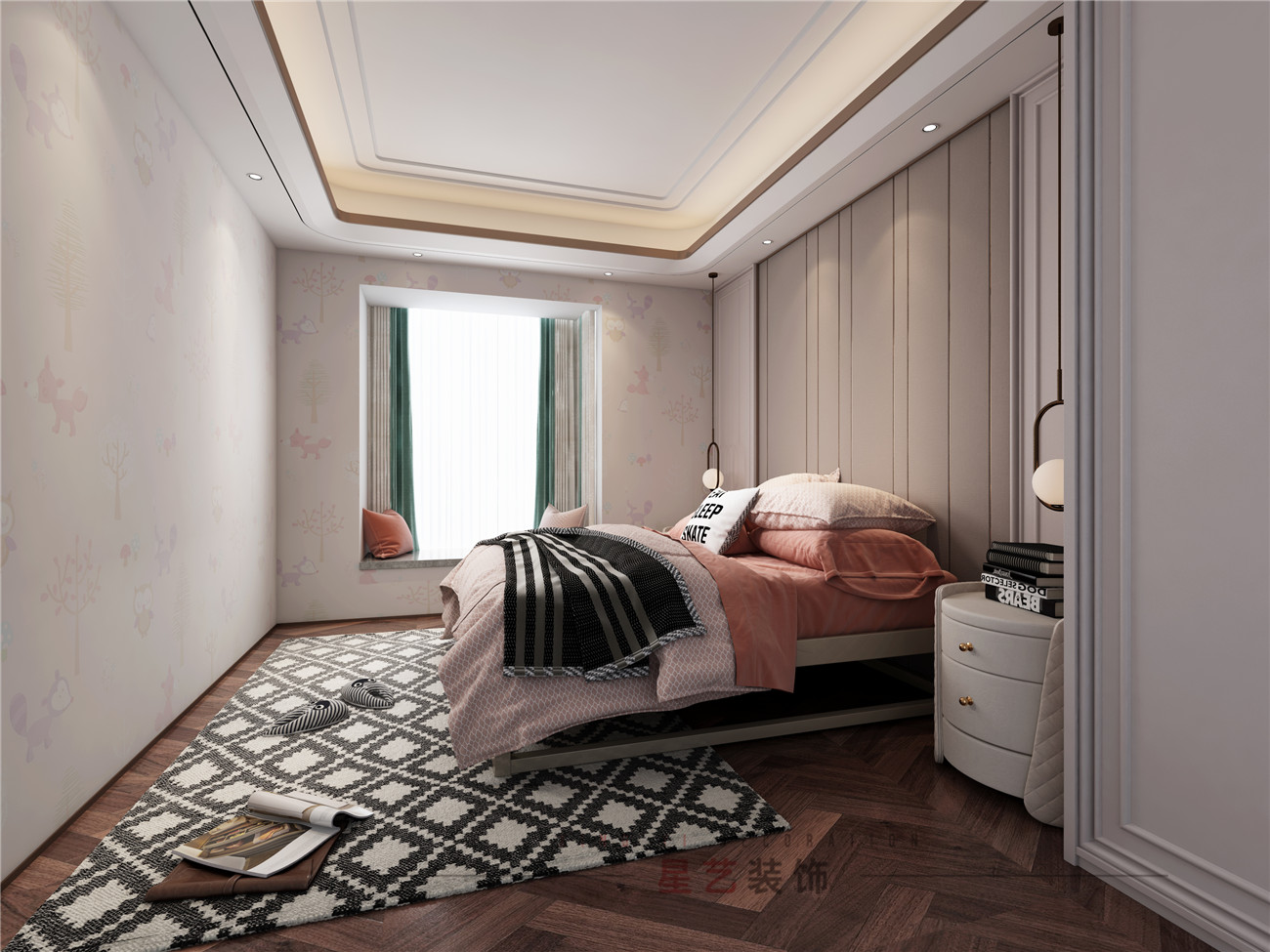 效果圖中的男孩用了大量的黑白灰設(shè)計,也是男孩子普遍比較喜歡的簡約設(shè)計,稍微有些凌亂的擺放也增添了生活的氣息。女孩房的效果圖中給人感覺非常溫馨舒適,墻上得狐貍圖案也顯得活潑俏皮。