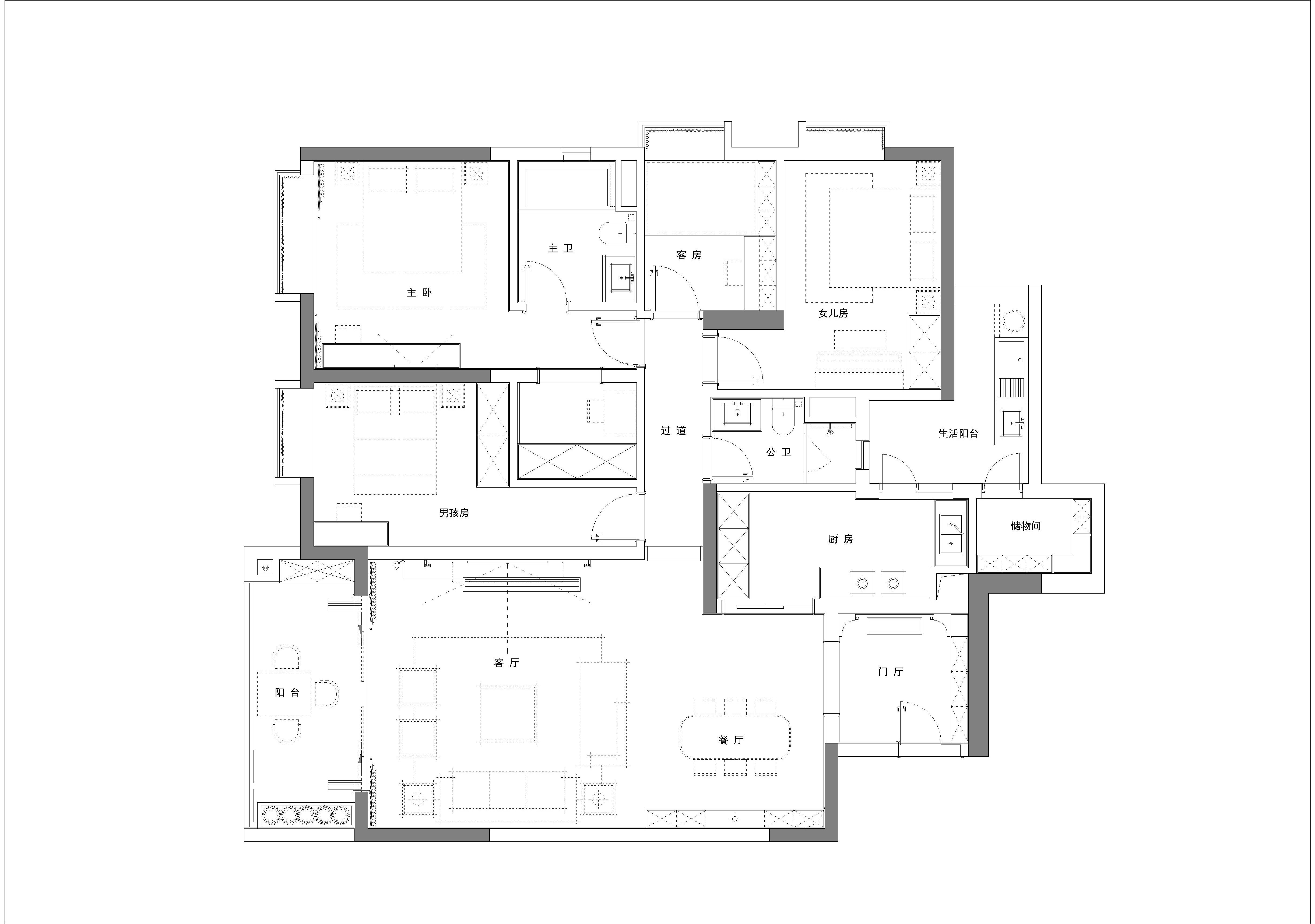 本案地處繁華的鬧市,但業(yè)主本人喜靜,也喜歡低調(diào)有質(zhì)量的生活,所以本案的主要設(shè)計方向是豪華但不張揚,講品質(zhì)但不夸張。首先就采用了出水芙蓉,大氣而不夸張的手法處理每個空間上的細節(jié),不管是入戶的玄關(guān),還是客廳臥室,都盡可能把握品質(zhì),追求細節(jié),營造出浪漫有情調(diào),有品質(zhì)的安寧生活,享受芙蓉帶來的清新安寧,卸去塵世的繁華喧囂。