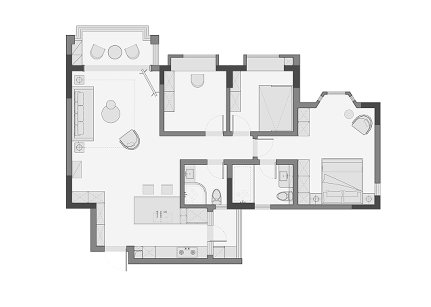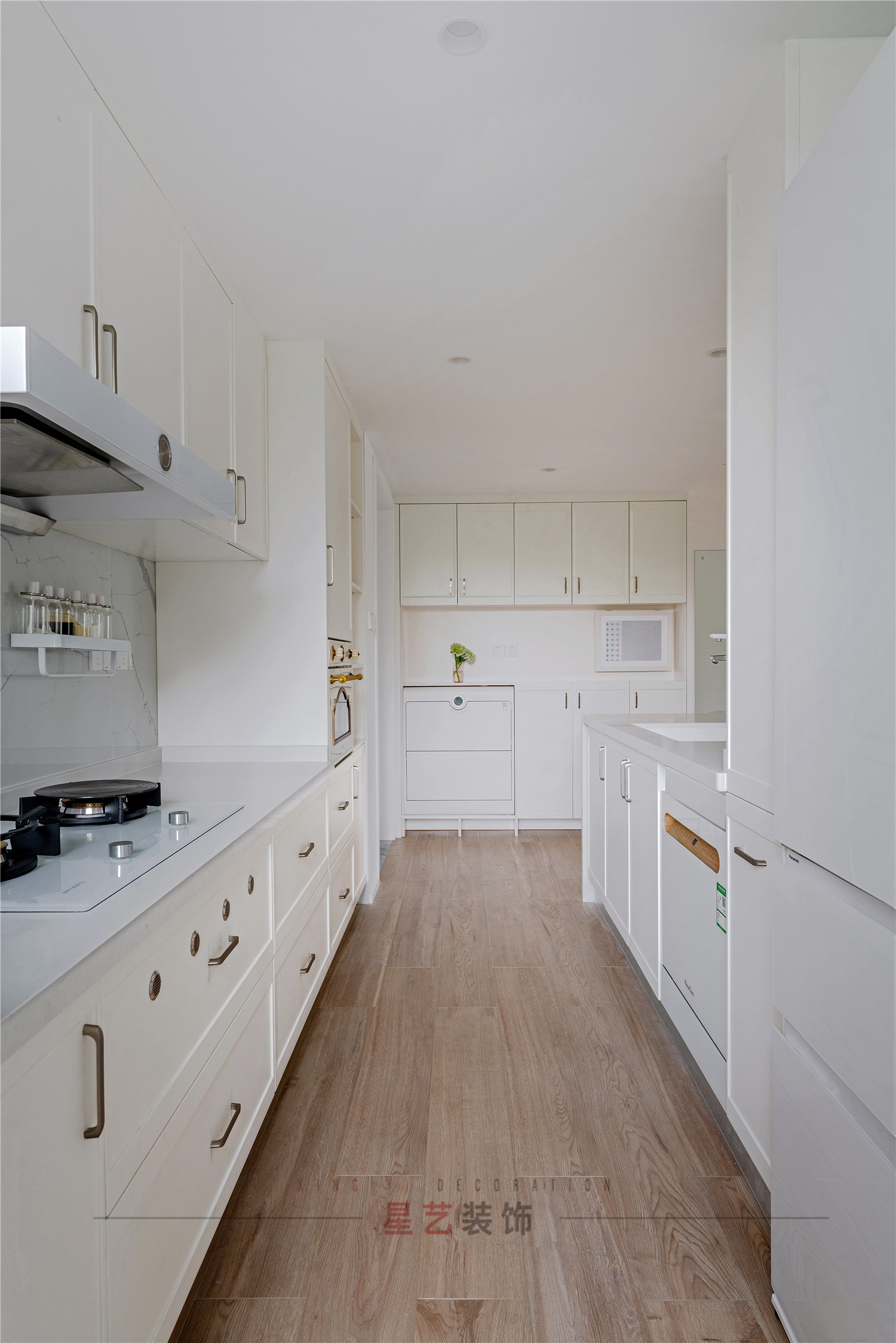 選擇開放式的廚房,植入一個超大導(dǎo)臺讓整個空間更加寬敞,多人使用都不會感覺太擁擠,體驗感極佳。日常一邊做菜的同時也可以跟家人交流,與最親密的人享受柴米油鹽帶來的樂趣。
