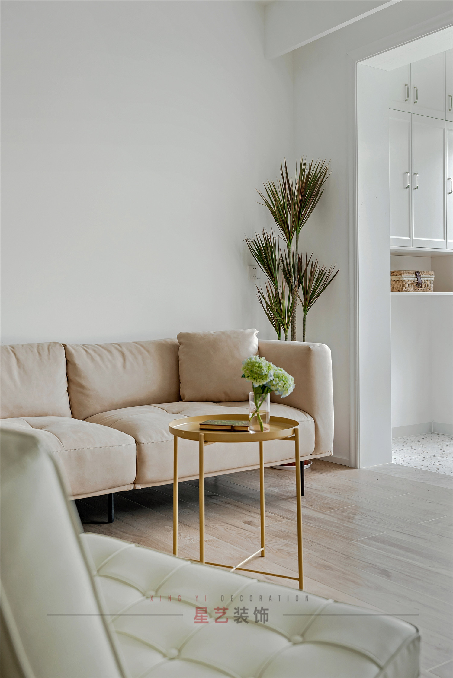 客廳入眼則是極簡與自然的風(fēng)格,用白色加原木色的搭配將素雅純凈的力量充分發(fā)揮出來,構(gòu)筑出寧靜和諧,靜養(yǎng)人心的溫暖小家。