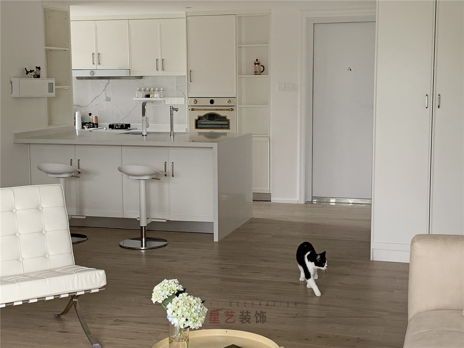 照明是摒棄傳統(tǒng)一個主燈點亮整個房子的方式,采用射燈,軌道燈,燈帶局部照明,讓整個房子更有層次,不管是軌道燈打到墻上反射出來的還是燈帶從天花折射出來的燈光都是非常柔和的,即使是射燈也是采用4000K(中性光)防炫射燈,讓整個空間更加柔和舒適。墻面及所有房門跟柜體也是統(tǒng)一白色讓整個房子更整體,踢腳線也是采用宅邊白色貫穿整個房子。