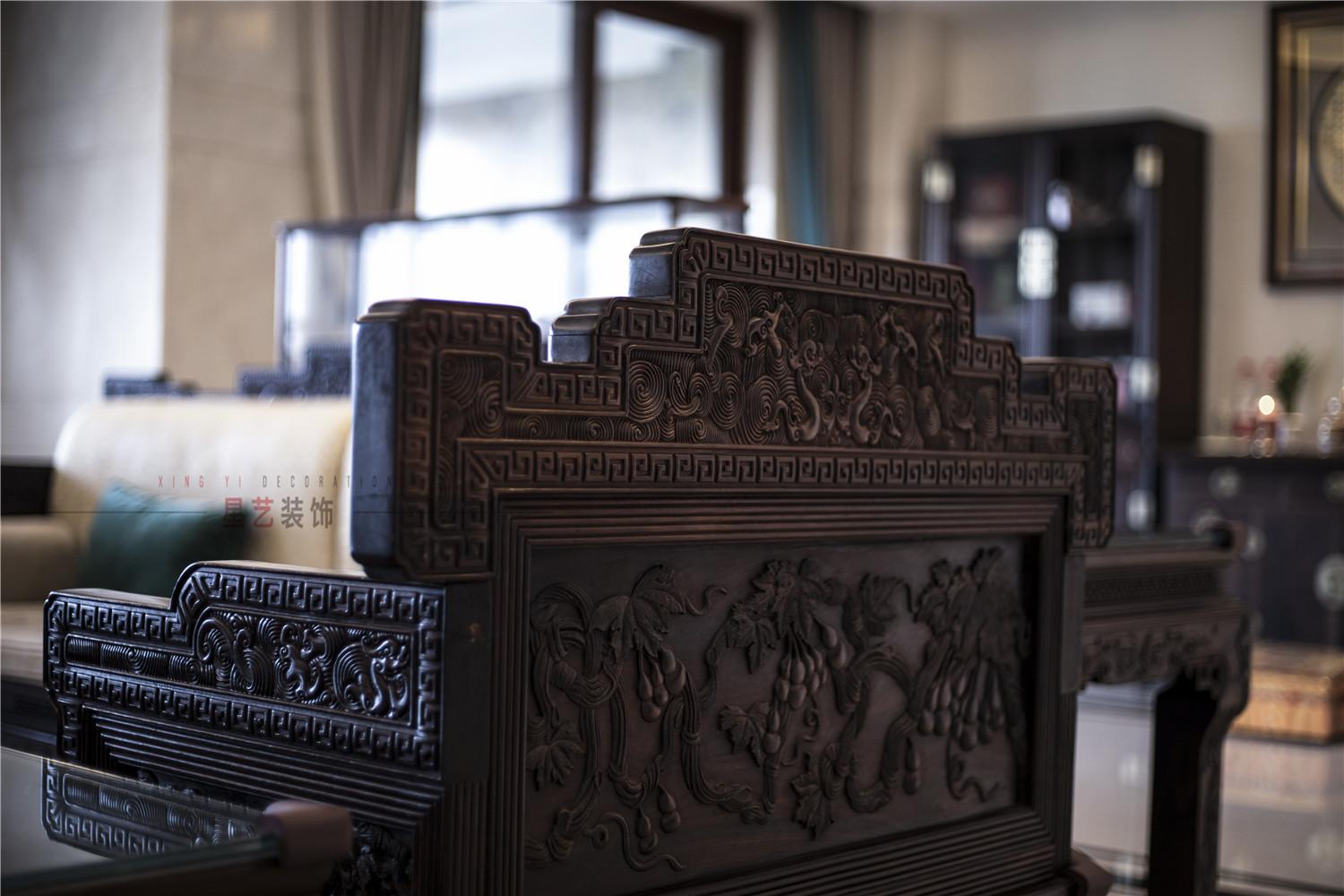 經(jīng)過數(shù)百年的時(shí)間積累,中式家具的雕花元素發(fā)展至今已經(jīng)非常多元化。沙發(fā)主要用回紋勾勒,簡約婉轉(zhuǎn),百轉(zhuǎn)千回。加上背面葫蘆藤的雕刻,精致又華貴。