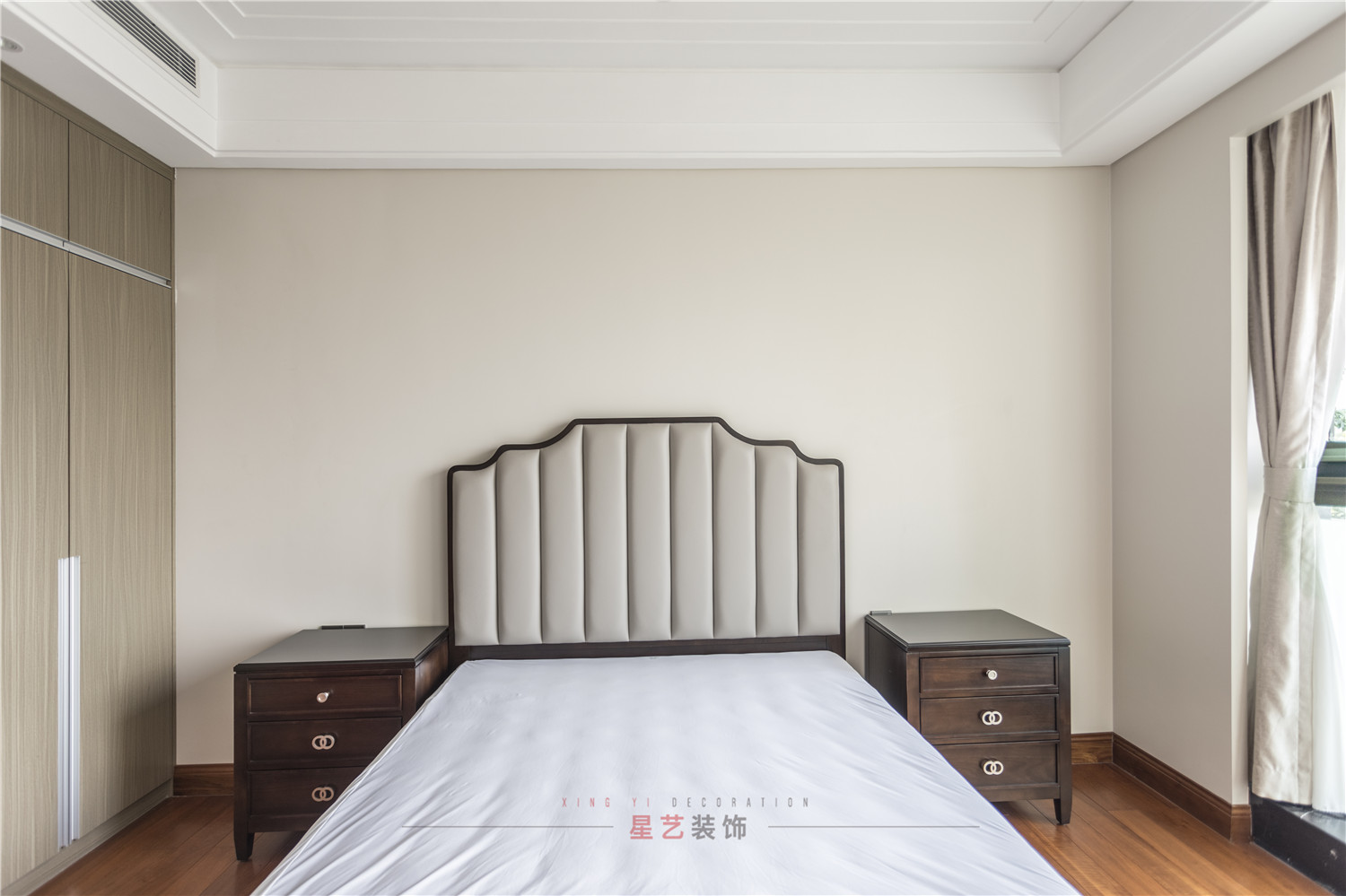 臥室的設(shè)計(jì)上主要追求簡約自然,保留了對稱的風(fēng)格,和實(shí)木的材質(zhì),舒適又有格調(diào)。總體風(fēng)格以文化的韻味+混搭的材質(zhì)+人性化的功能和設(shè)計(jì),成為三代同堂家庭的共同之選。