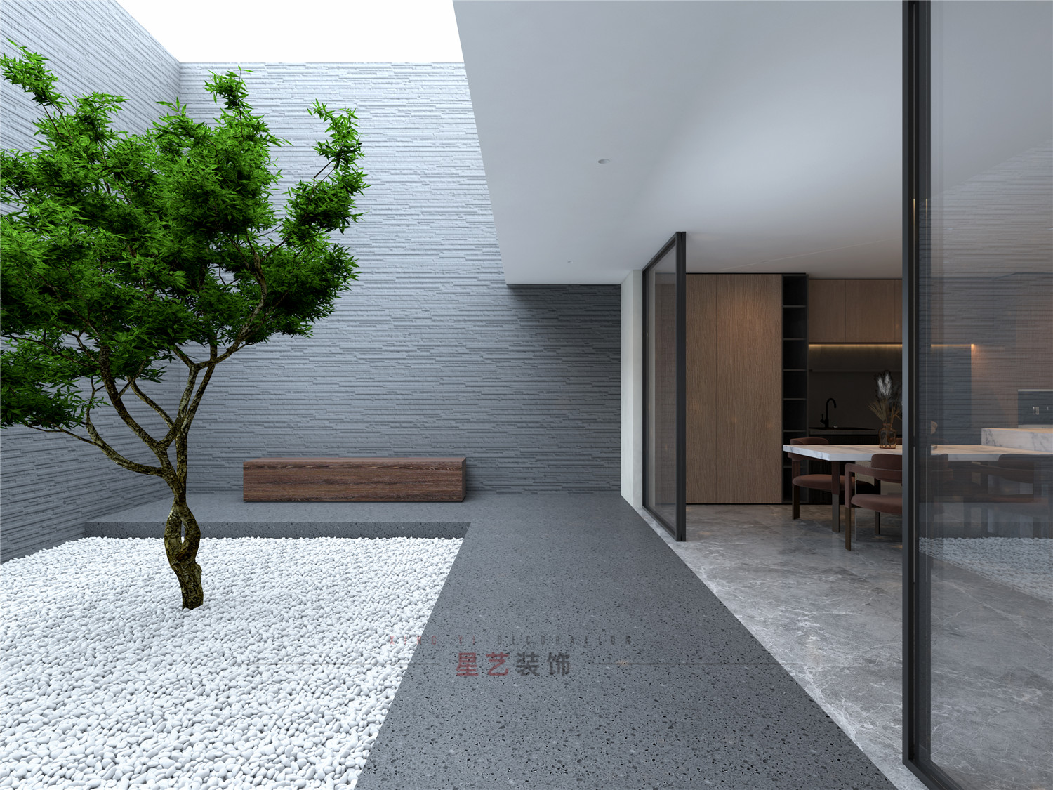 陽光從落地窗投射進(jìn)來,光影錯落,線條干練;