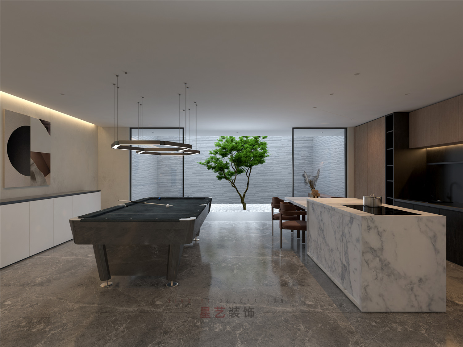 休閑區(qū)設(shè)置了臺球桌與吧臺,與三五好友推杯換盞;