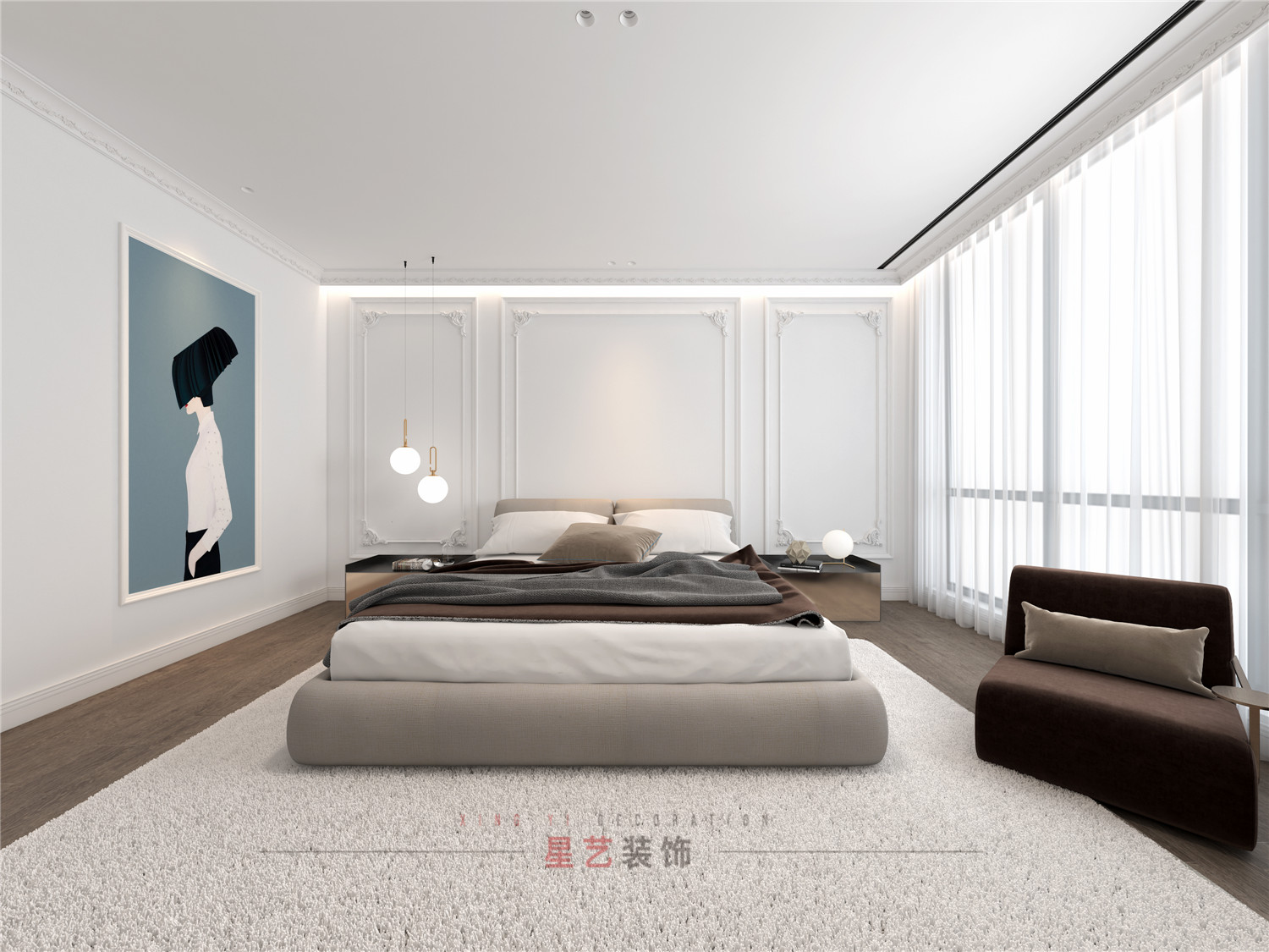臥室部分以白色為主,在視覺上拓寬空間,通透明亮;