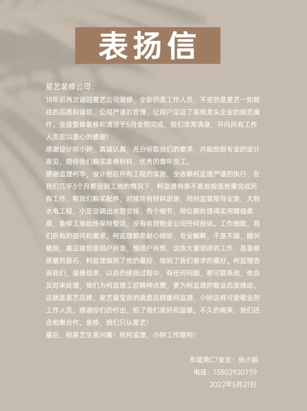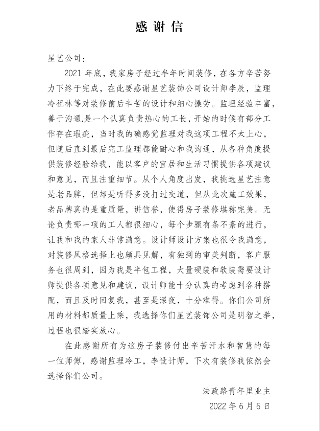 客戶贊許|一封封來(lái)信帶來(lái)最誠(chéng)摯的謝意:“裝修,我們只認(rèn)星藝”!