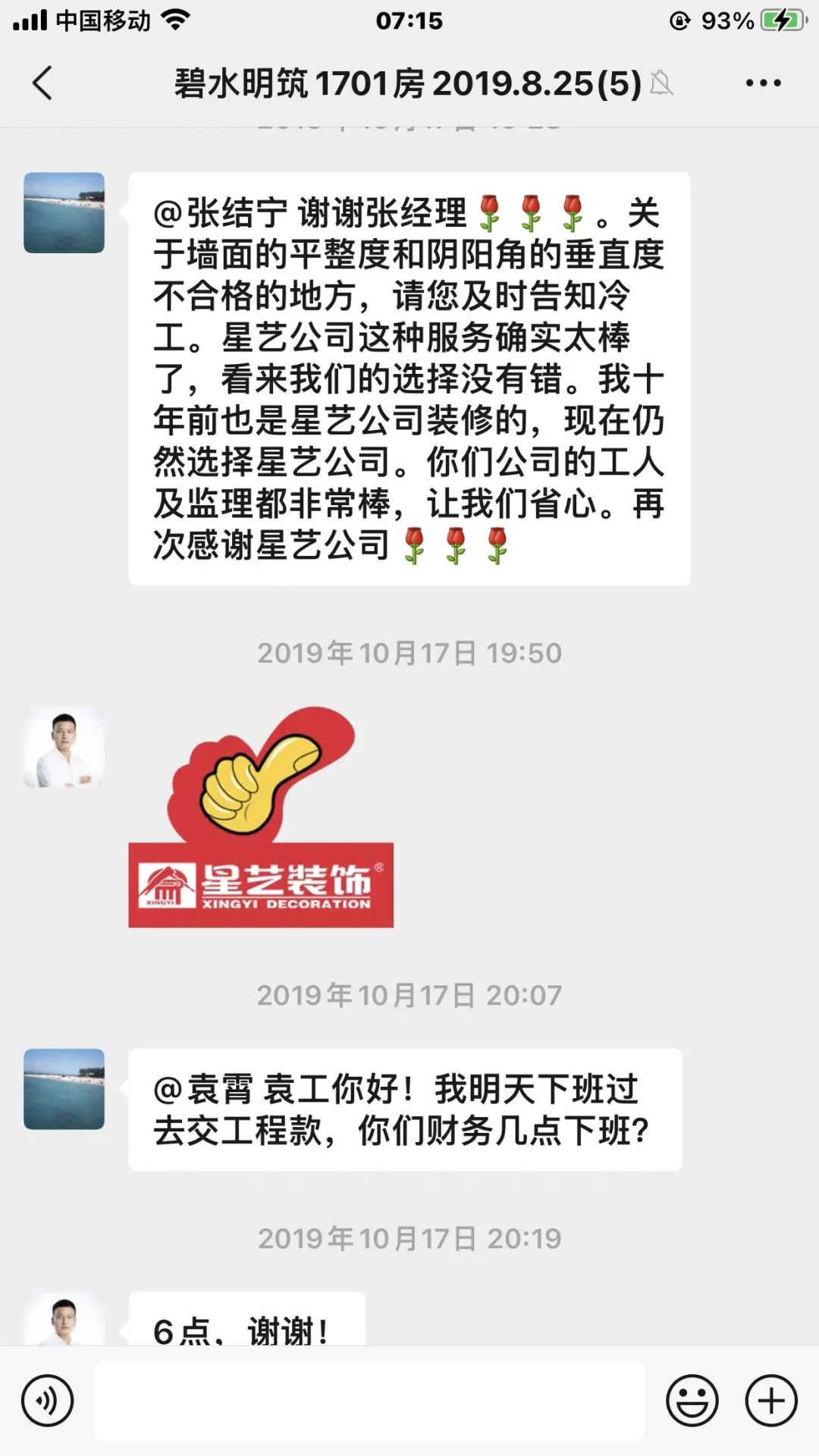 不管時(shí)隔多久,星藝的品質(zhì)和誠(chéng)信都不會(huì)變,耐心傾聽,規(guī)范專業(yè),隨叫隨到,一如既往致力于給每位業(yè)主筑造美好小家。