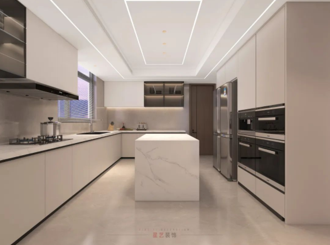 廚房中以線帶面,層次分明,呈現(xiàn)簡約優(yōu)質(zhì)、低調(diào)有品的家居生活。