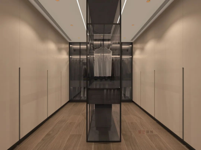 雙邊布局的衣帽間收容量更大,視覺上也顯得井井有條;配一門到頂和玻璃掩門的設(shè)計(jì),更添奢華氣質(zhì)。
