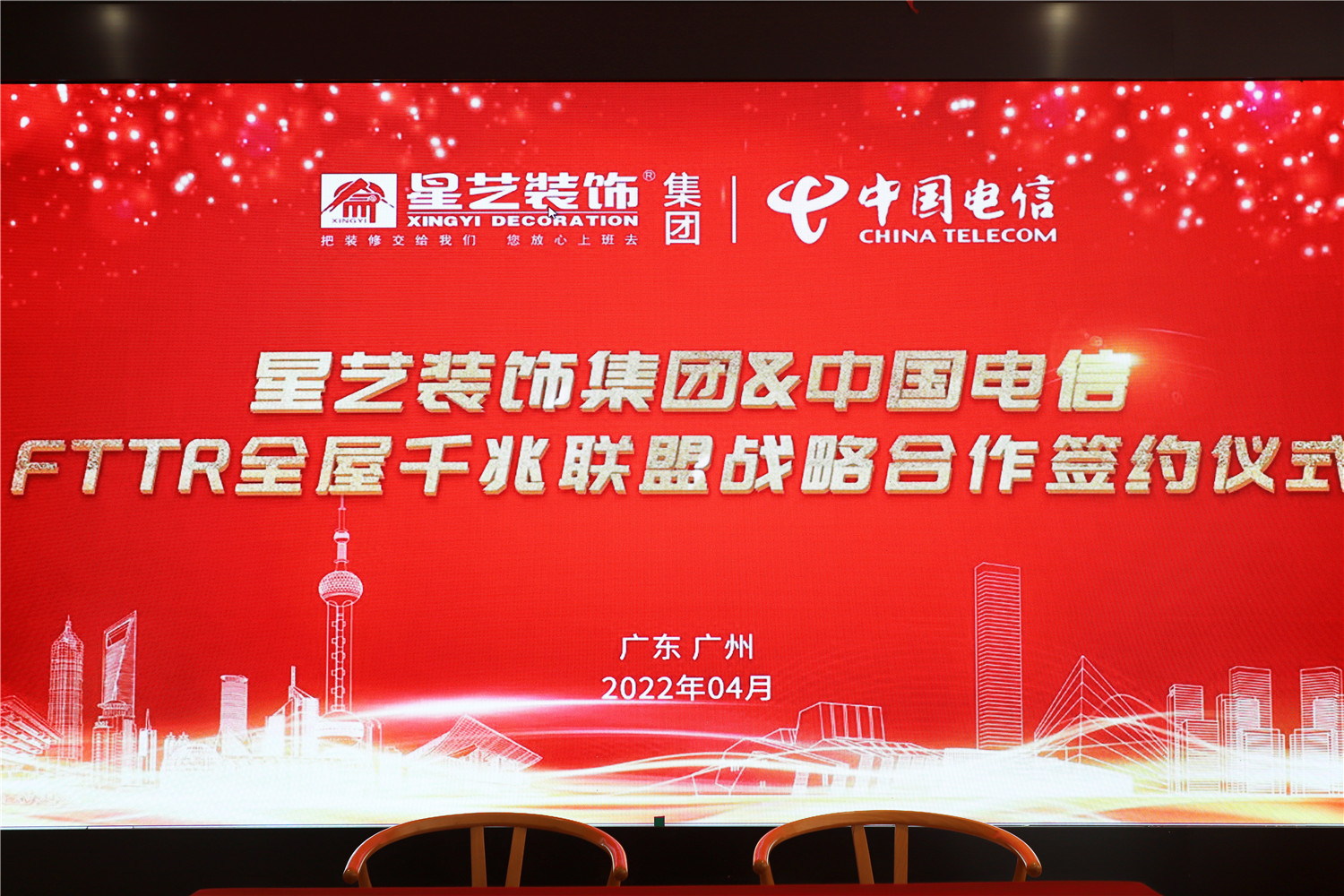 2022年4月24日,星藝裝飾廣州分公司與中國電信廣州分公司FTTR全屋千兆項目戰略合作簽約儀式在廣州市星藝整裝體驗館圓滿舉行,在立足客戶需求為出發點,合作共贏的基礎上,正式達成FTTR全屋千兆項目戰略合作伙伴關系,實現強強聯合、優勢互補。